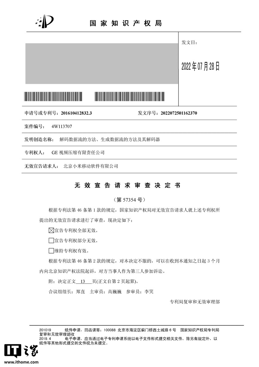 最高法裁决:小米打赢与 GE 公司 HEVC / H.265 视频编解码专利战